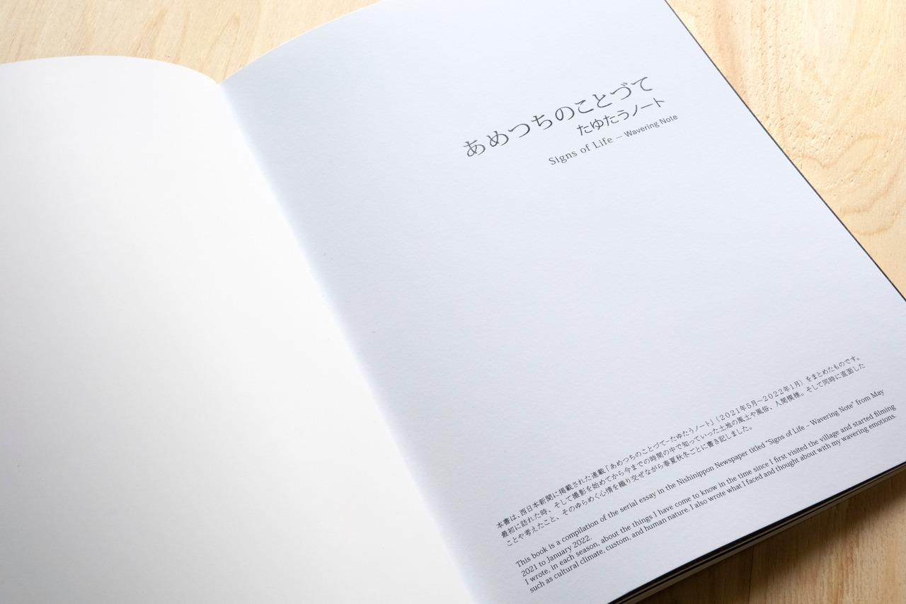 This book is a compilation of the serial essay in the Nishinippon Newspaper titled “Signs of Life – Wavering Note” from May 2021 to January 2022.
